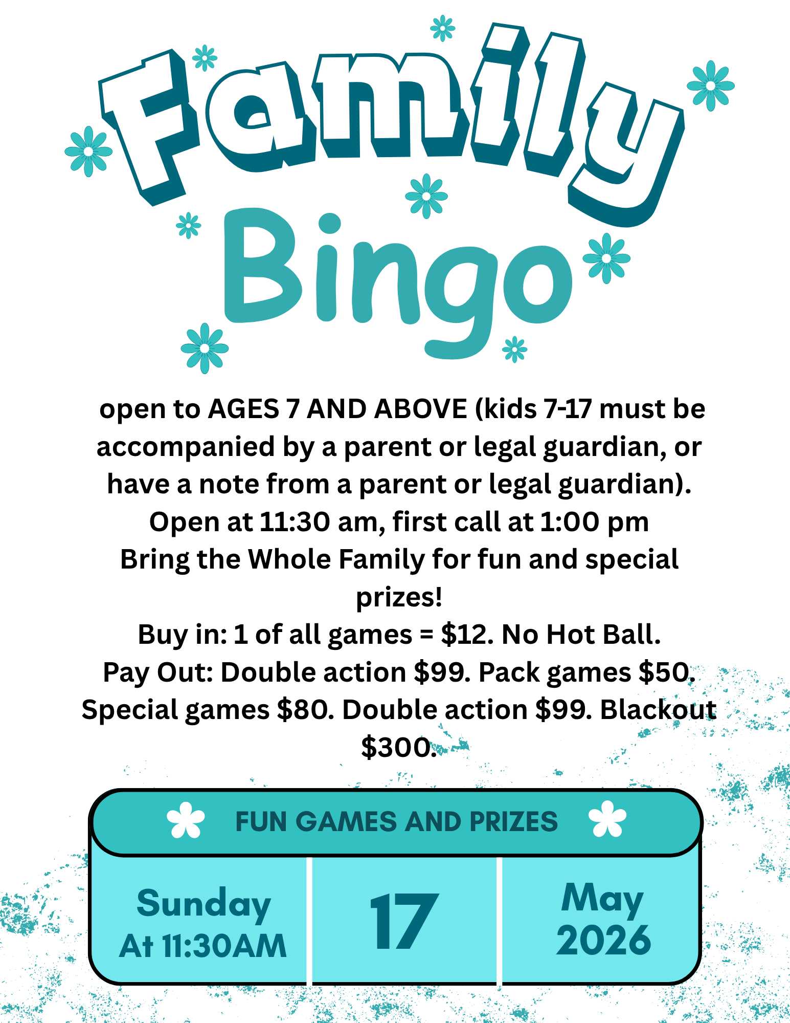Sun: Closed for Business, open on special dates for Family Day Bingo - check Facebook or call 541-883-7171.
